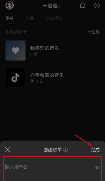 3、弹出窗口,输入歌单名称后,点击“完成”即可。