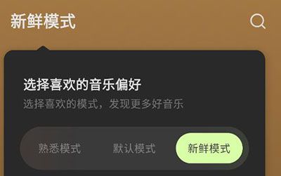 4、汽水音乐也拥有自己的模式功能,可以在左上角进行切换,包含了熟悉模式、默认模式以及新鲜模式等。