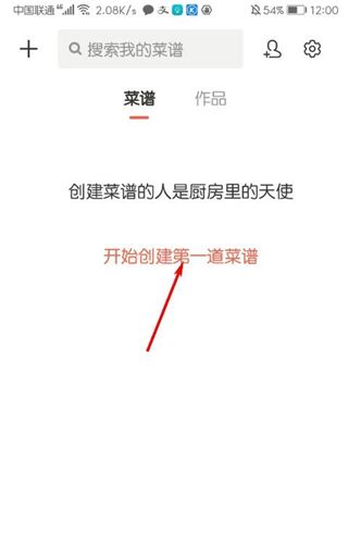 3、在我的界面,点击【开始创建我第一道菜谱】。