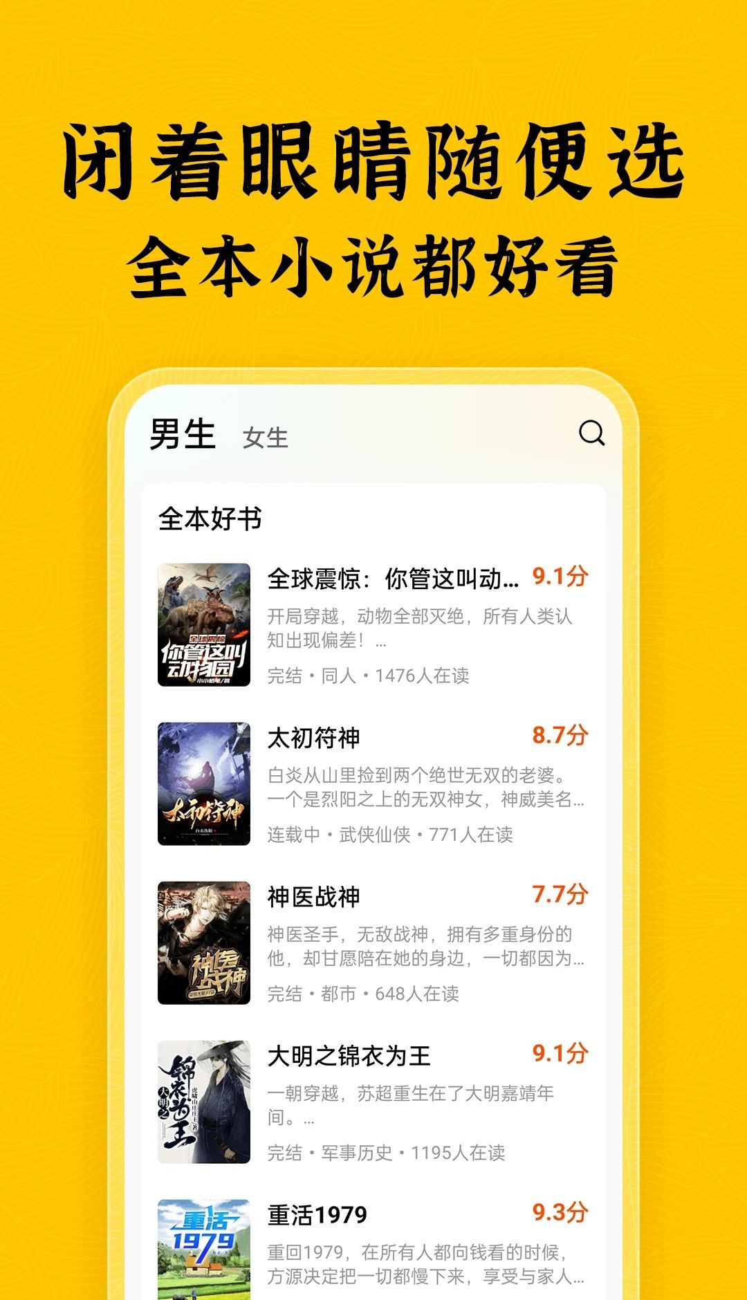 全本免费小说是一款非常实用的免费看书软件,拥有全新的小说主题书单,可以呈现各种优秀的小说作品,免费阅读看书,还提供全新的小说列表,随时随地自由关注热门小说书籍的更新,轻松阅读喜欢的小说书籍和最新内容,能完全满足所有阅读需求,还拥有智能搜索方式,可以快速搜索查找各种热门且受欢迎的小说,自由享受优质的追书阅读之旅,还加入了分享功能,允许用户自由分享各种精彩小说书籍来看。