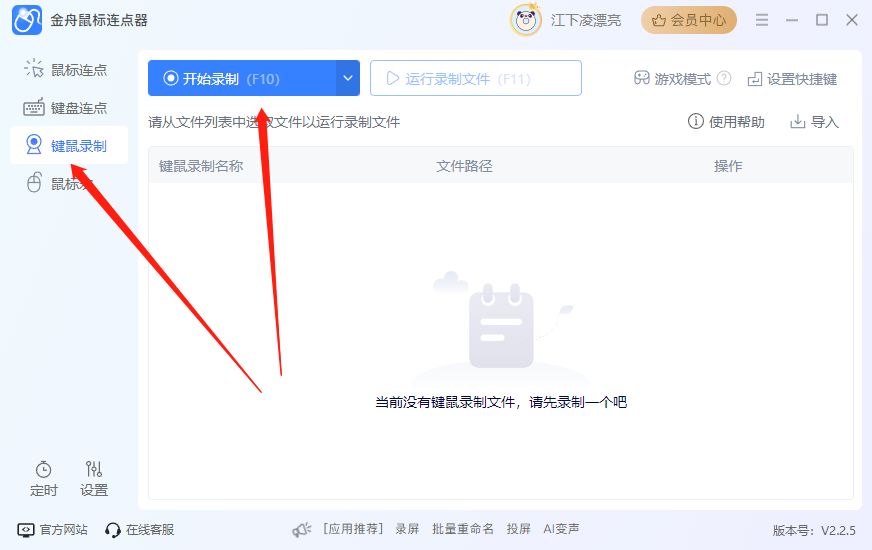第一步、选择鼠标录制功能,F10 或点击“开始录制”,然后录制鼠标的移动轨迹、点击操作等
