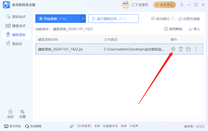 金舟鼠标连点器是一款高效实用的鼠标自动化工具,支持一键鼠标连点,每秒能够点击高达一千次,帮助你快速完成重复的点击任务,极大节省时间和精力。支持鼠标录制与回放功能,用户可以将复杂的鼠标操作录制下来,实现一键执行,进一步提升操作效率。在游戏中挂机刷怪、网购时抢购商品等场景下都能使用。