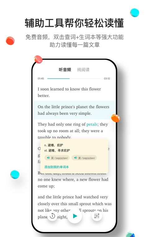 薄荷阅读免费版是一款非常人性化的掌上阅读学习应用,它以用户为中心,提供了丰富的阅读和学习功能,帮助用户轻松愉快地提升英语阅读和词汇能力。软件提供了大量的免费英语阅读材料,用户可以随意选择自己喜欢的文章进行阅读和学习,无需支付任何费用。软件会根据用户的英语水平和学习需求,推荐适合用户的阅读材料,让用户可以阅读到符合自己水平的文章。软件提供了多种学习互动功能,包括注释、词汇表、语法讲解等,帮助用户更好地理解和记忆文章中的知识点。