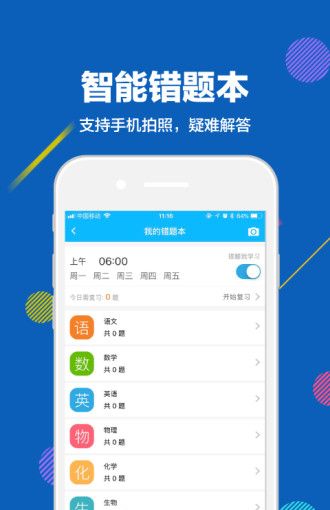 3、智能错题本,手机拍照,一键上传,自动提醒复习计划,支持下载打印。