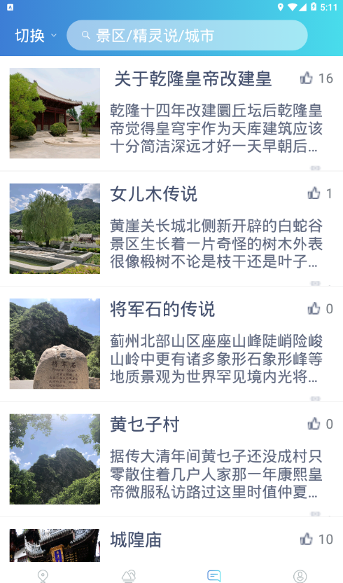 景区详情,让旅游不再枯燥,景点讲解,了解历史了解文化,精灵说,精灵与您说遍天下。轻松推荐各类精美旅游景点,便捷订票,制定最优旅游路线,智能导游随身讲解,景区票价信息、实时天气、注意事项都轻松了解,省时省力,轻松出游。