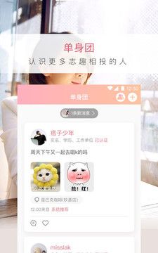 在单身团中,你可以记录单身生活的一点一滴,也可以加入有兴趣的单身团,和其他的单身小伙伴一起玩耍、脱单。
