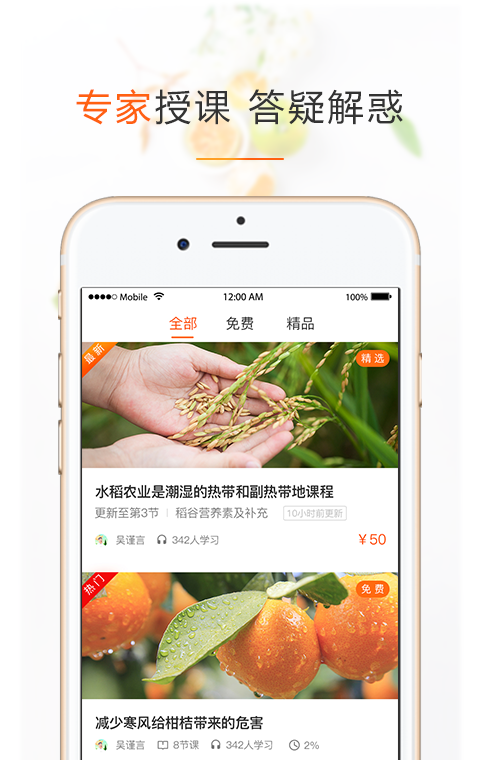 2、汇聚各路农技专家、农艺师、种植达人录制课程,专业性和实用性更高;