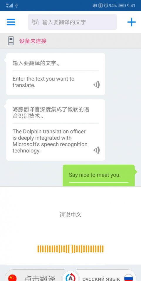 1、海豚翻译官app可以对中文、英语、日语、韩语、意大利语、俄语等多种语言进行互译;