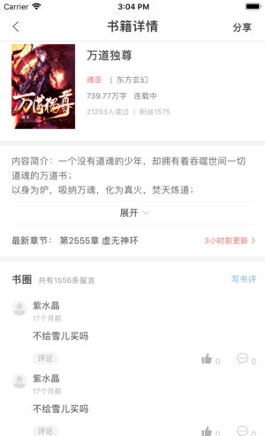 玄幻、修仙、都市、言情、同人、校园等众多细分阅读品类,偶像控、作家控,迅速找到所需小说。