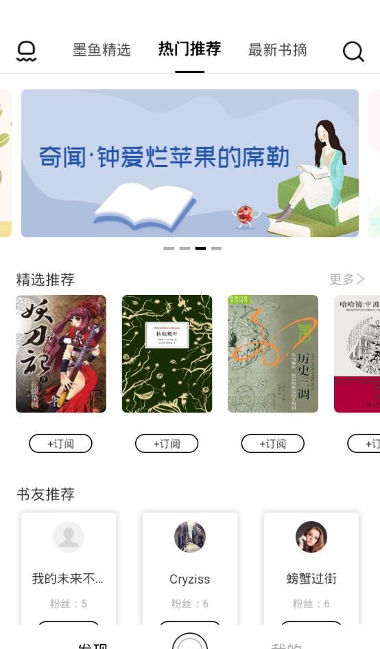 3、墨鱼最新书摘,阅读结识品位相投书友;