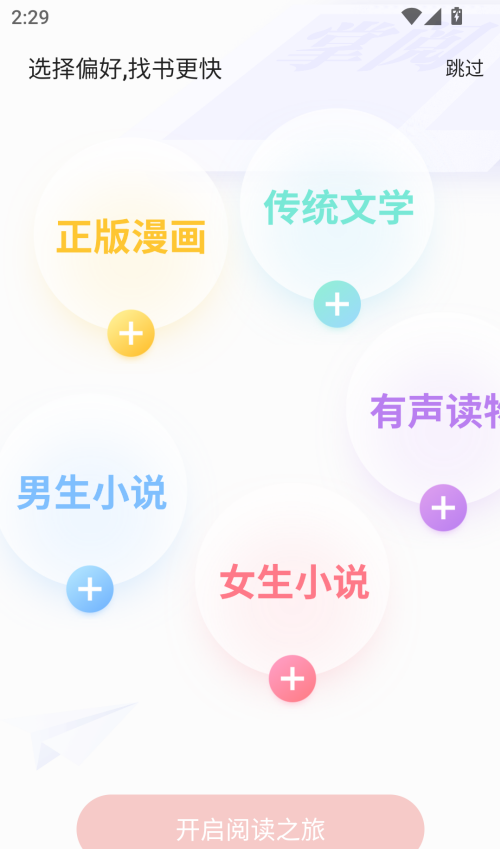 1、打开连阅免费小说,开始阅读前先设定好自己喜欢的类型,为你推荐更多好看的小说。
