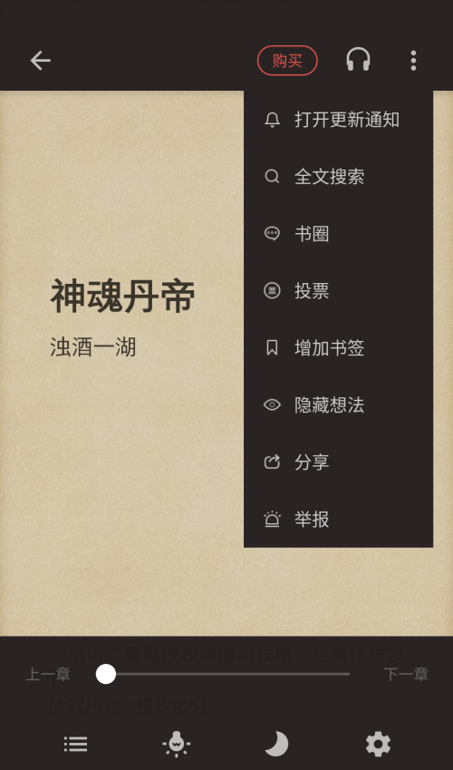 3、打开看的小说,软件支持自由设置阅读时的亮度、文字大小、夜间等等,还可以语音阅读,身临其境小说故事。