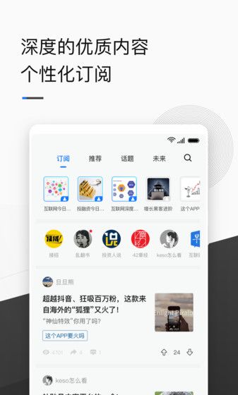 这是一款好用的资讯阅读应用。有趣,有价值,有点追求的信息阅读社区。拒绝无意义的杀时间、拒绝无聊的娱乐化、拒绝无营养的鸡汤八卦。为用户打造一个开放分享、自由订阅和理性讨论有价值内容的社区。