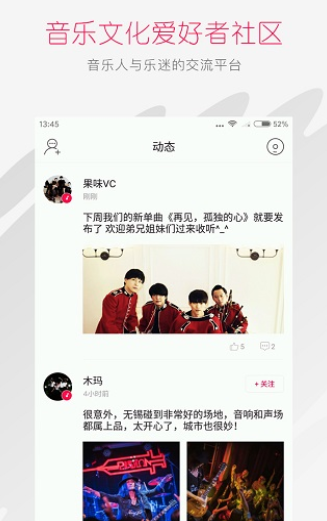 音乐人可通过手机发布文字、图片动态,比如演出照片、幕后花絮、生活状态等,让乐迷更多地了解自己;