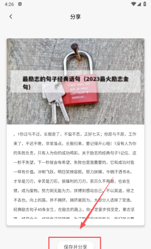 4、选择“保存并分享”选项,轻松将这条金句分享给朋友。