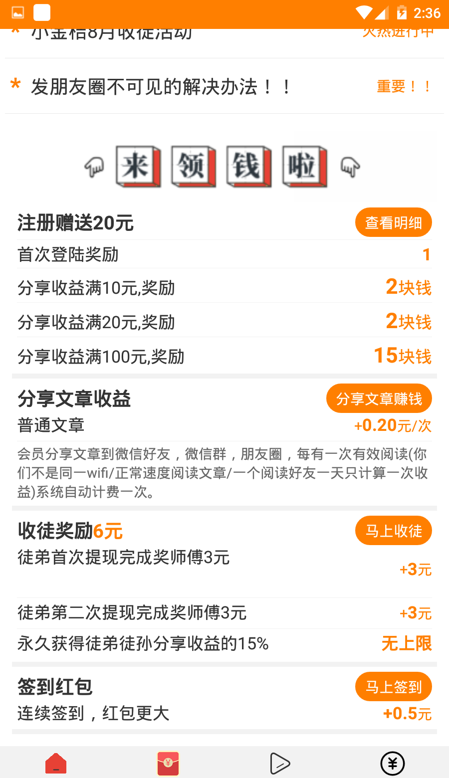 1、注册下载获得1元的新人红包,邀请好友参与可以获得6元的红包。
