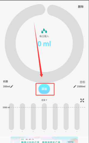 3、饮水记录模块支持手动添加单次饮水量,实时更新每日水分摄入统计。