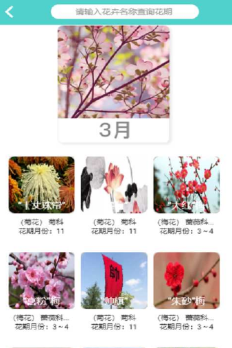 3、可以通过查询花卉的名字来查询到指定的花卉的花期信息;
