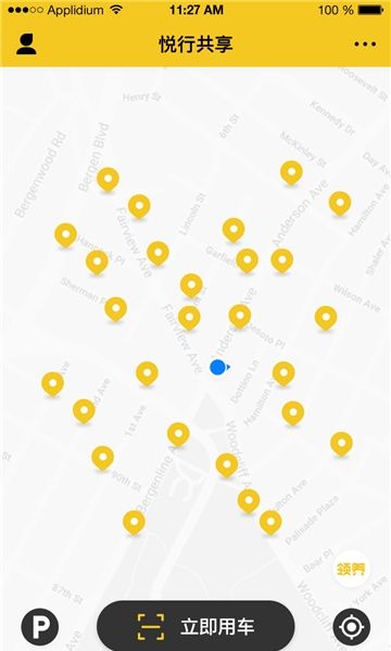3、软件帮助用户定位附近的租车点,快速找到车进行使用;