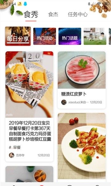 1、多样的美食推荐与美食的分享活动内容让美食制作互动更具参与感。