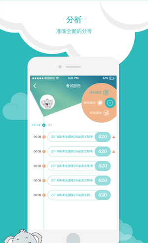 考啦学伴,东软睿云旗下移动应用,凝结东软集团十几年教育实践精华,新版本针对教育部《关于推进中小学教育质量综合评价改革意见》,融合大数据、人工智能、云计算等先进IT技术手段,从思想品德、学业水平、身心健康、艺术素养、社会实践等多个维度为学生建立档案,深挖在校考试价值,以数据解读基础教育,全面促进中小学教育发展。 考啦学伴,以考试成绩发布与学业成果测评为重点,同步错题集、知识点分析、答题卡查看等功能,实现在智能设备及电脑上统一的跨平台体验。
