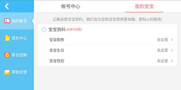 3、登录账号,设置宝宝资料,为您和宝宝提供更准确、更贴心的服务。