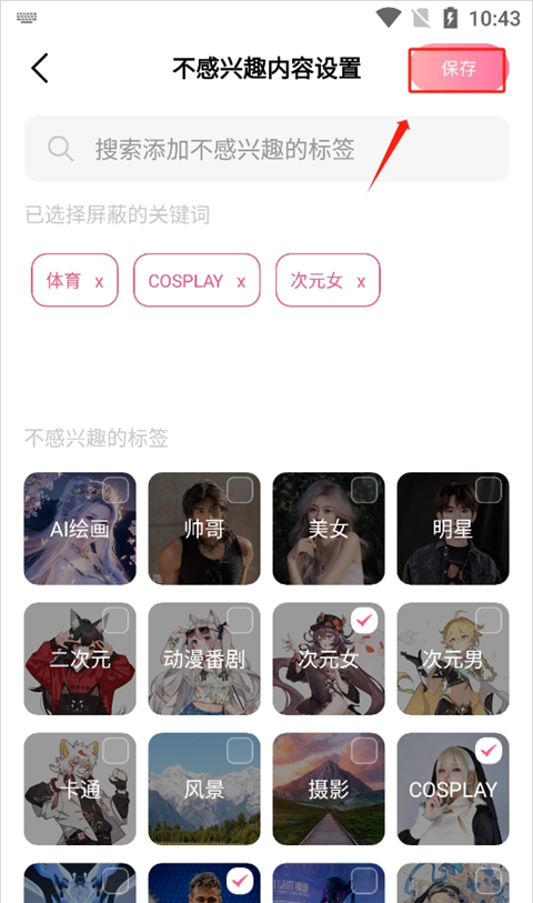 3、在这个页面就可以选择自己不感兴趣的标签,然后点击“确定”按钮。