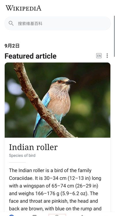 1、下载并打开维基百科app,点击上方的搜索,进入搜索界面