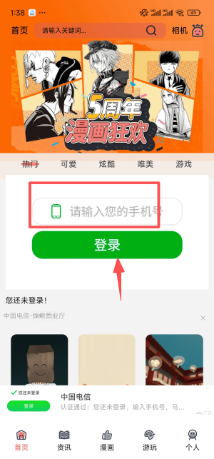 2、于首页输入手机号完成登录,否则部分功能无法使用。
