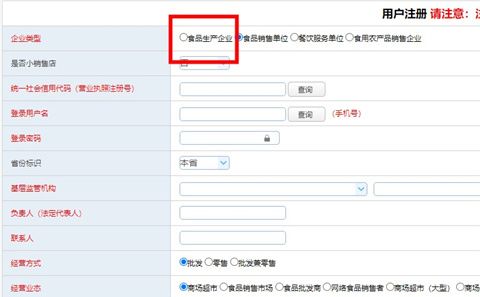 2、选择食品生产企业(小作坊在是否小作坊栏选“是”)。
