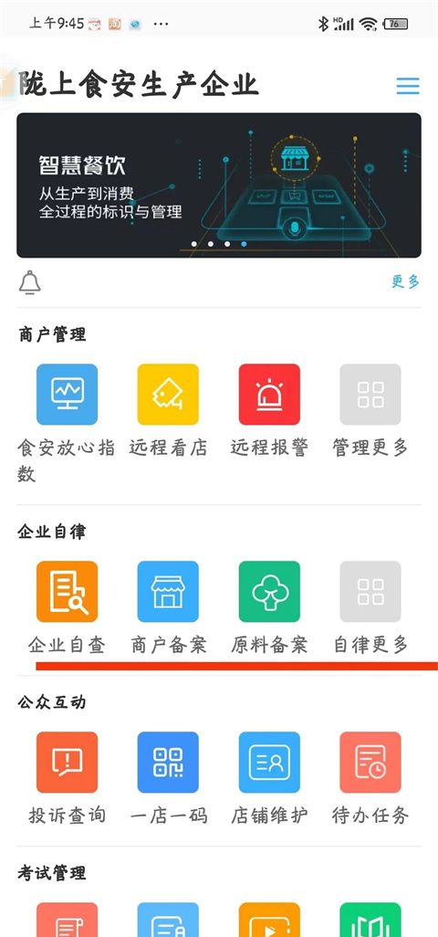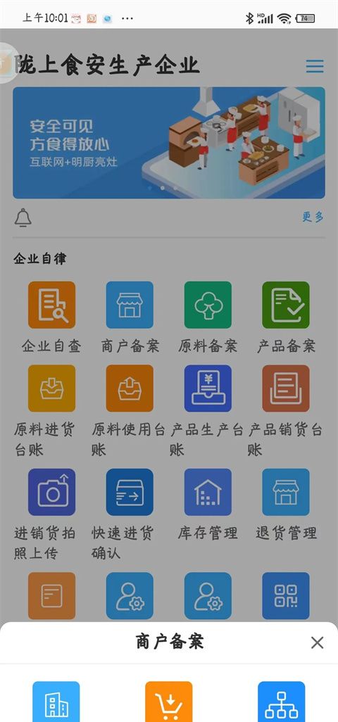 企业自查管理、商户备案管理、原料备案管理。