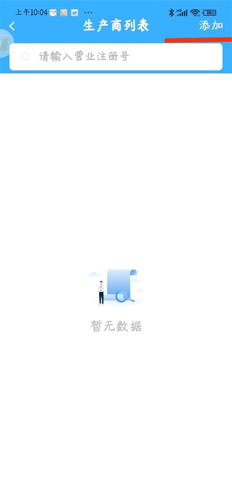 以生产商备案为例:点击右上角“添加”: