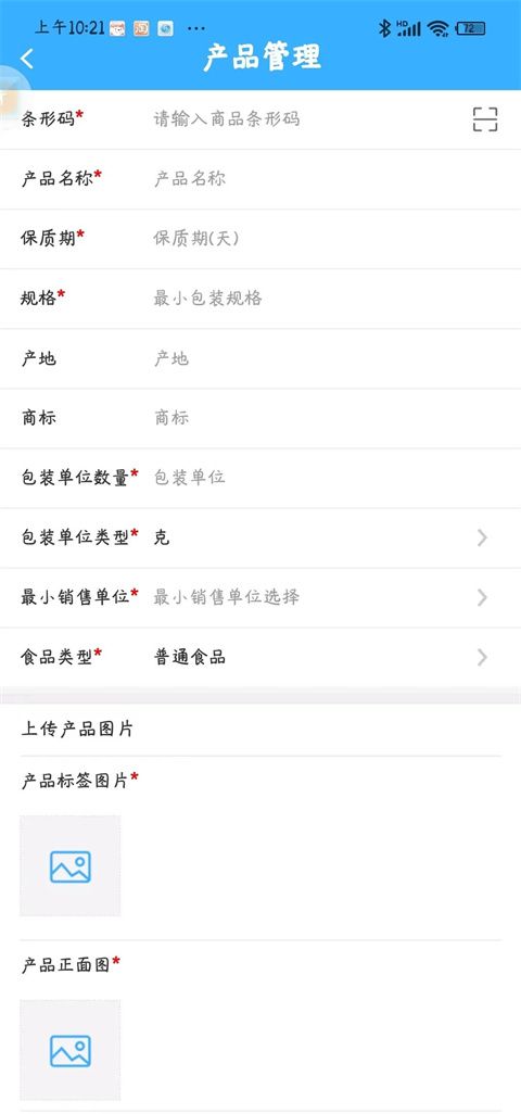 7、产品备案:(这是备案的产品,是指本企业生产加工的成品,每一种成品备案1次,条形码企业根据需要编写,各种产品条形码不能重复),同样点击产品备案,点击右上角“添加”页面,打开产品备案页面,进行备案。