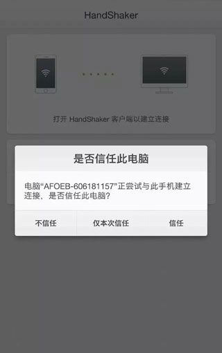 华为手机请在“设置”-“权限管理”中找到“HandShaker”,在“设置单项权限”中打开“信任此应用”选项