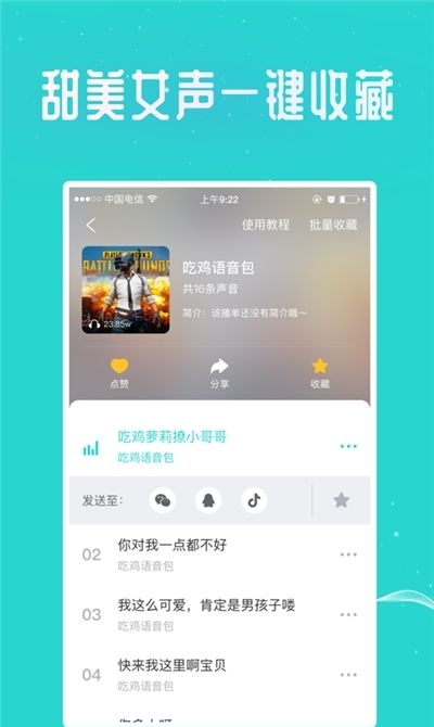 3、可以将语音包分享到微信或QQ,也可以使用悬浮窗进行变声录制,随时随地和小哥哥们畅聊。