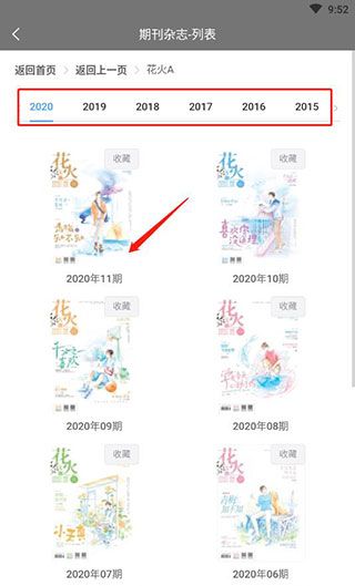 2、如果在推荐中看到有喜欢的期刊就可以点击进入选择观看,比如进入花火,可以选择想要的;