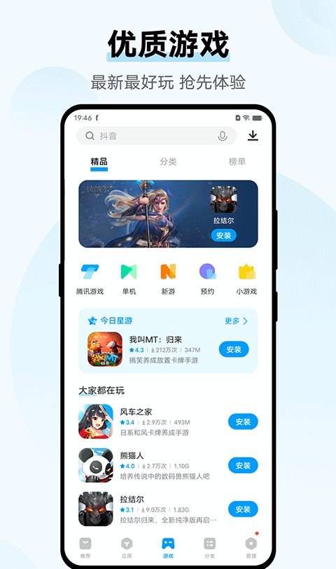 iqoo应用商店可以帮助你找到许多在中国没有上线的宝贝应用程序,包括游戏、音乐和电影,这些应用程序完全免费下载和使用。设置一些软件专栏,如每日选择和玩家推荐,并找到更多流行的应用程序资源,这样你就不必担心找到好的软件。