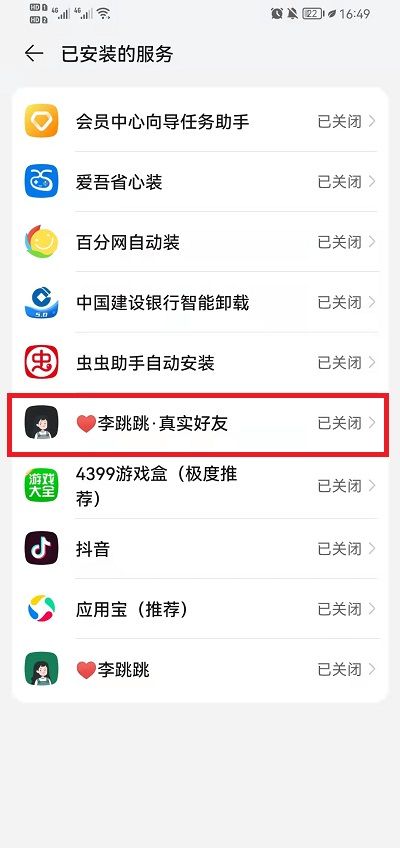 3、在已经安装的服务列表中找到【李跳跳真实好友】点击进入到服务中;