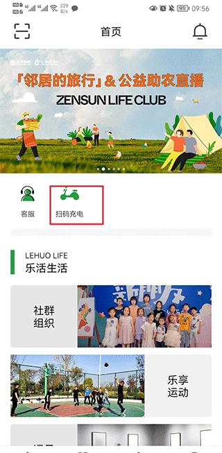1、打开正生活app,在首页中点击扫码充电