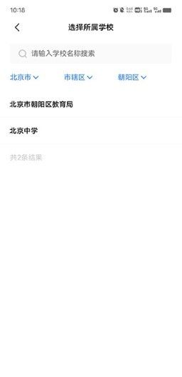 2、根据用户的真实情况选择市区的学校,如果按条件没能找到可以直接输入全名搜索