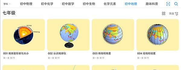 平台包含数学、物理、化学、地理、生物、 科学等初中阶段数百个 平台包含数学、物理、化学、地理、生物、科学等初中阶段数百个知识点,并结合初中课本和教学大纲,通过AR技术,由多位名师对抽象难懂的知识点进行归纳总结,立体原理演示、语音讲解、操作互动、测试测评等多元化一对一解析。
