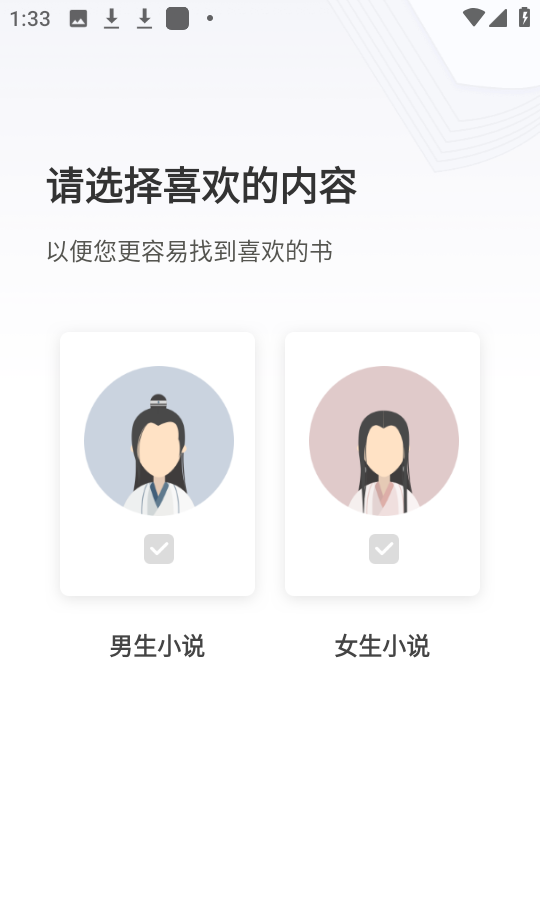 2、第一次使用需要自定义设置好阅读喜好,如图所示。