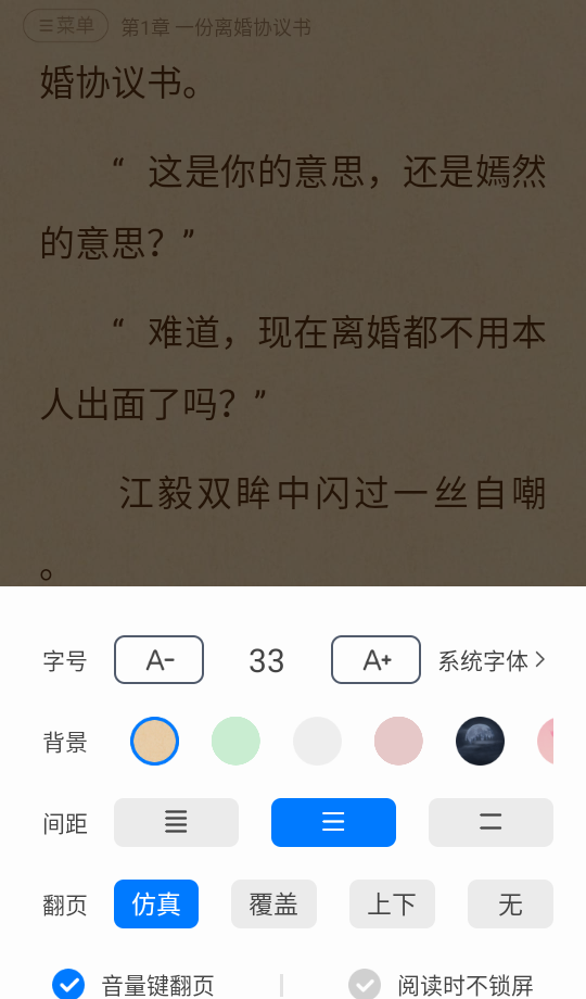 7、还可以自定义调整字号,背景,以及自动翻页功能。