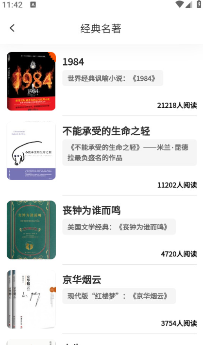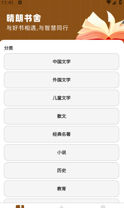应用界面设计简洁、美观,易于操作,用户可以快速上手。无论是文学爱好者还是普通读者,都能在晴朗书舍中找到适合自己的阅读内容,享受阅读的乐趣。应用内设有多种书籍分类,如文学、历史、科技、经济等,方便用户查找感兴趣的书籍。但是软件内并没有真正的小说资源,只是比较方便大家找喜欢的同类型小说并且进行交流而已。