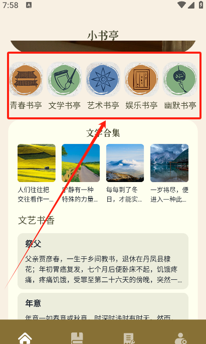 2、在首页可以看到超多类型的书亭点击喜欢的类型就可以快速进入相关页面了