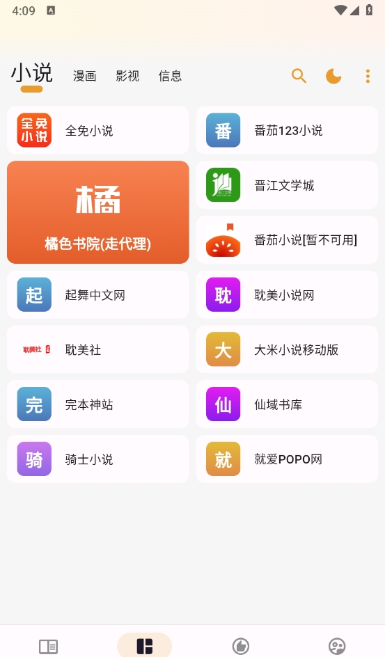 1、打开软件后,点击发现界面上的“获取最新图书来源”将自动更新导入列表。