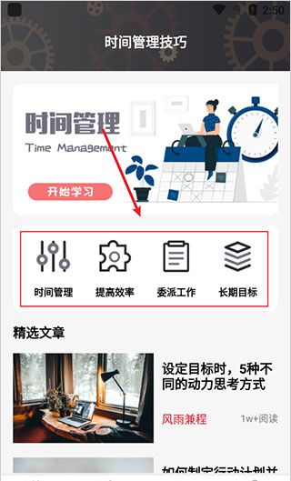 1、进入软件后,用户可以在【时间管理】模块中,使用时间管理、提高效率,委派工作和长期目标等功能。