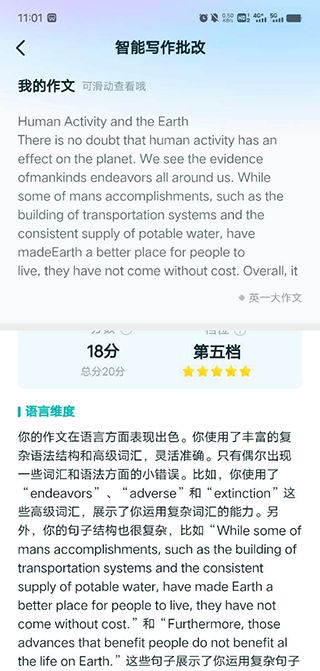 5、结果出来啦,软件会在下面给出你的作文评价和修改建议