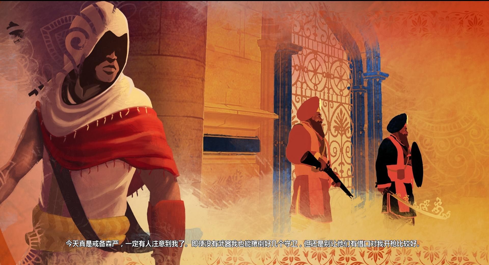 《刺客信条编年史:印度》是育碧蒙特利尔工作室开发,育碧发行的动作角色扮演类游戏,于2016年1月12日发行。游戏设定在1841年的印度,玩家将扮演刺客阿尔巴兹·米尔,在锡克帝国与东印度公司交战期间,重夺被圣殿大师拿走的神秘物件,同时保护朋友和爱人。游戏采用2.5D画面,玩家可体验到印度独特的建筑和风景。玩家要运用潜行、暗杀等技巧,使用长刀、刃环等武器与敌人战斗。