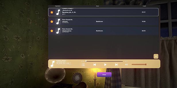 房屋:用于休息与休闲放松。有一些交互,例如,往唱片机添加自己喜欢的音乐并播放,坐在沙发上听壁炉燃烧的声音,翻书,看白噪音电视,享受摇椅...